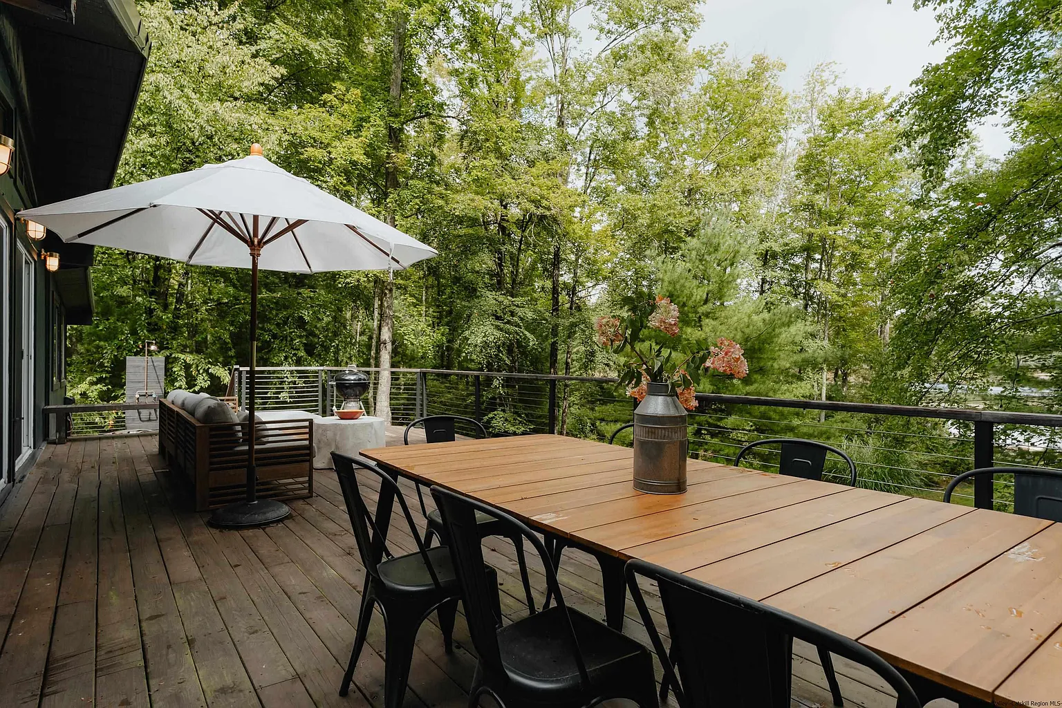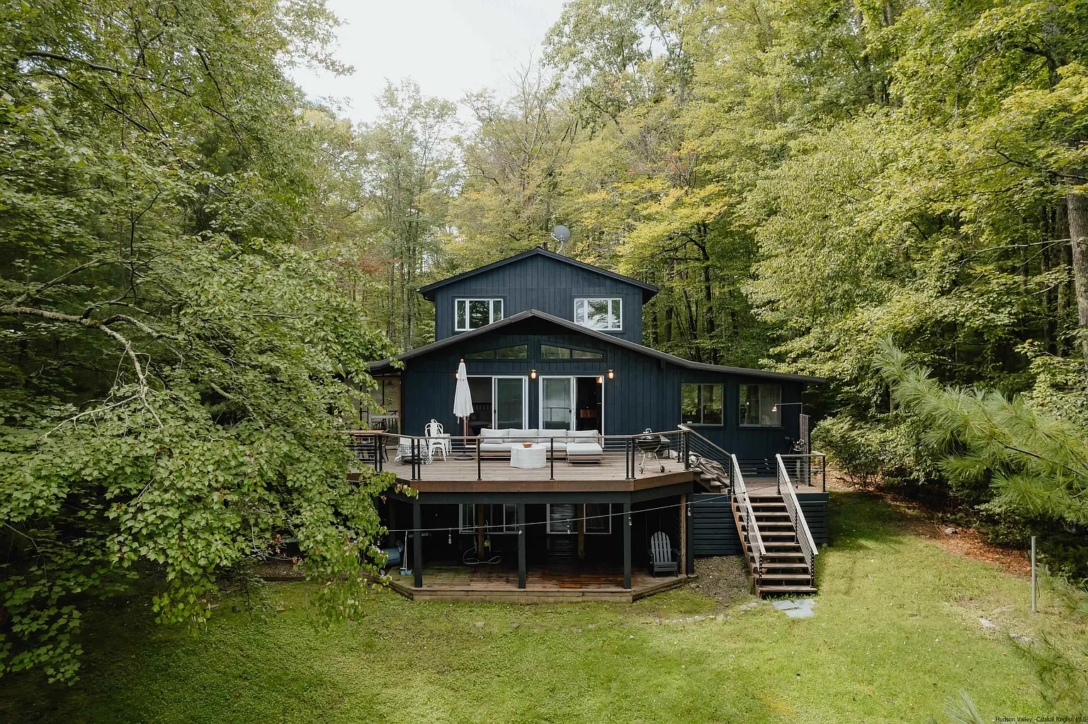 This private home is nestled amidst five acres of land, including one acre of prime lakefront property. This magnificent home boasts a secluded setting on the tranquil shores of McAuleys Lake. With direct access to McAuleys Lake, immerse yourself in the joys of lakeside living without being in a flood zone. Whether it's early morning kayaking, mid-day picnics, or late-night stargazing by the water, this property is an ode to nature lovers. The residence itself offers a sprawling four bedrooms and newly renovated three bathrooms. Each room is designed to capture stunning lake views, bask in natural light, and provide comfort. Architectural brilliance meets contemporary design in this unique home. High ceilings, tasteful finishes, and a seamless indoor-outdoor flow ensure that every corner of this home exudes clean lines while still having warmth. Updates to the property include: Freshly painted interior and exterior, New hardwood floors, An on-demand water heater, A finished basement, New appliances, Kitchen and bathroom renovation, New pergola and work to the deck, New metal roof, The modern, freshly updated kitchen has new appliances and ample counter space, with an inviting ambiance perfect for intimate dinners in the adjacent dining area. With five acres of land, find your sanctuary relaxing in the new pergola, outdoor shower, and expansive deck. The property also features a garage and a whole-house generator. The property promises privacy and tranquility while close to local amenities and attractions and is 20 minutes from the Port Jervis train station. Enjoy many of the local restaurants at White Lake, Wine taste at Bashakill Vineyard, and 20 minutes to ski at the Holiday Mountain Ski Resorts. Visit many of the emerging towns like Barryville and Eldred. Discover the joy of Lakefront living, expansive space, and fresh air at 60 Wildwood Way.