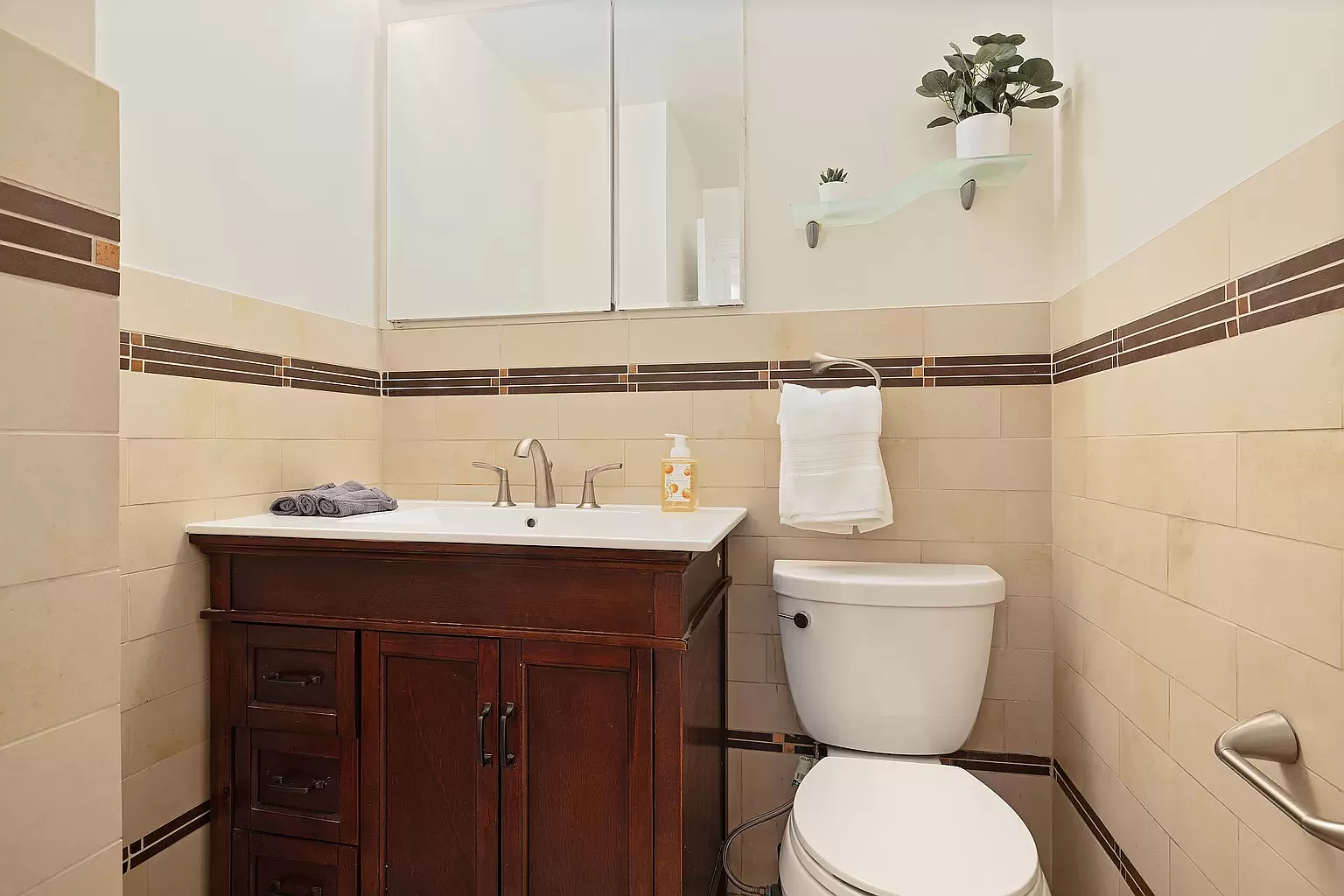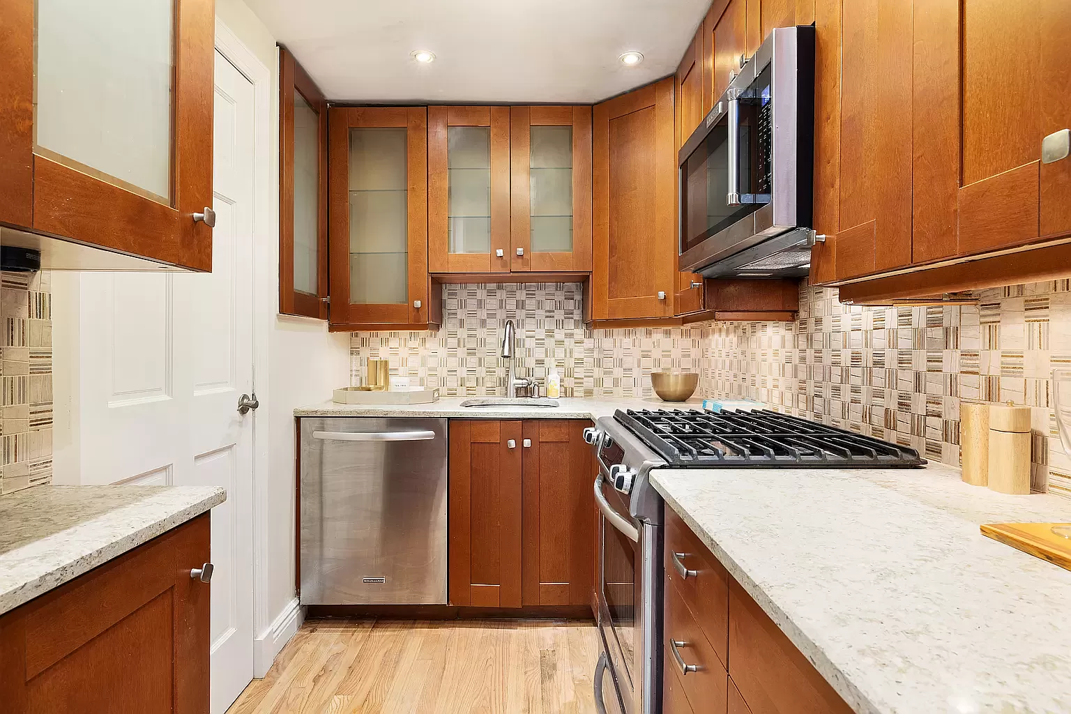 If you are a chef at heart, you will appreciate the well-thought-out galley kitchen. It is outfitted with high-end, KitchenAid stainless steel appliances, quartz countertops perfect for prepping your favorite recipes, and plentiful cabinet space, including a walk-in pantry where you can store all your gourmet ingredients.